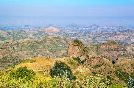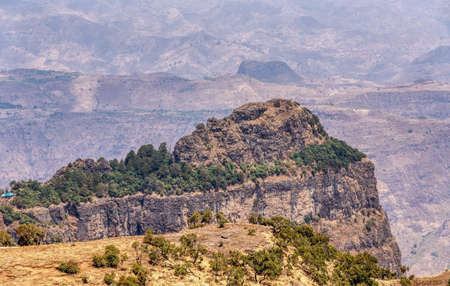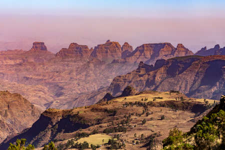 Landscape view of the Simien Mountains National Park in Northern Ethiopia on the way to Axum, Africa.