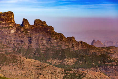Landscape of beautiful Semien or Simien Mountains National Park landscape in Northern Ethiopia. Africa wilderness. Mountain hiking concept.