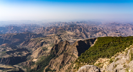 hills panorama of beautiful Semien or Simien Mountains National Park landscape in Northern Ethiopia near lalibela and Gondar. Africa wilderness