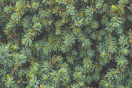 Green spruce branches in the forest. Christmas background. Pine needles.
