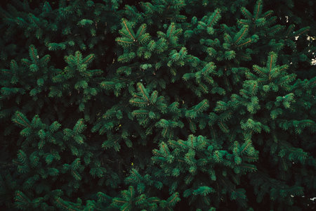 A dark green pine tree background with numerous branches and leaves. The branches of the evergreen trees form an intriguing pattern, while their delicate details enhance its beauty. This photograph was taken from above at eye level using a Canon EOS camera. It has a high resolution of 3056 x 2489 pixels and is presented in a panoramic format. --ar 11:5 --v 6.1 Job ID: 262fb884-ce7d-41de-976a-54eb2e71ae8e
