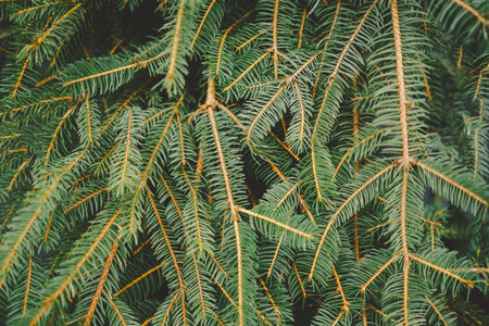 Fir tree branches background. Shallow focus. Perfect natural fern pattern