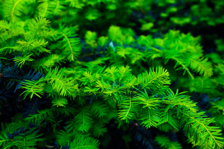 Vibrant evergreen foliage with dense, needle-like leaves creates a rich, textured backdrop perfect for nature-themed projects or botanical displays.