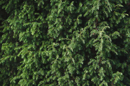 Fir tree texture background. Blue Chinese pyramid juniper Stricta branches.