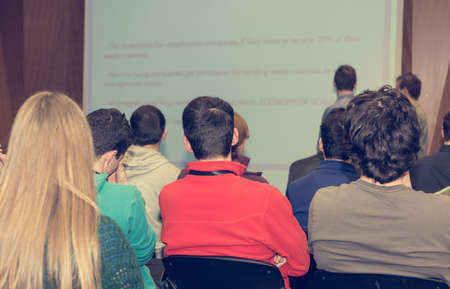 Audience listens to the lecturer at the conference hall
