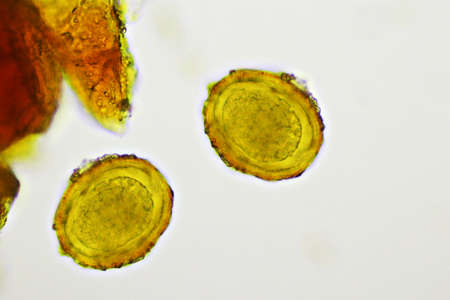 Egg of Ascaris lumbricoides (roundworm) in human stool, analyze by microscope, 400x