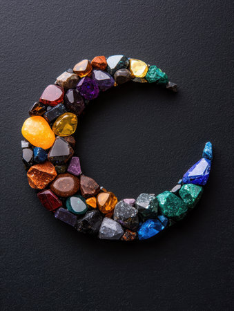 Colorful gemstones on black background with vibrant crystals, perfect for design and decoration