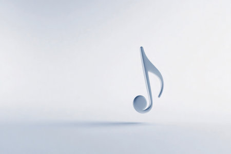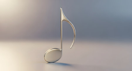 Metallic eighth note floating in an empty space, representing concepts of music, sound, and melody