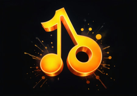 An abstract artistic representation featuring treble notes and musical elements in vibrant gold tones against a dark background, evoking creativity and harmony.