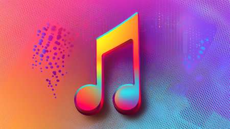 Vibrant neon music note on colorful gradient background evoking artistic expression and musical creativity.