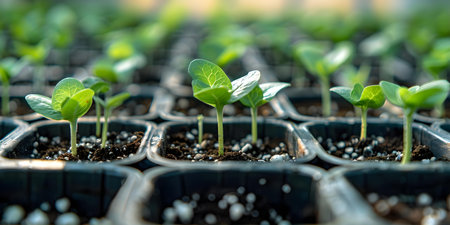 Closeup of seedlings symbolizing new beginnings life and sustainability suitable for advertising communication education or decoration. Concept New Beginnings, Sustainability, Seedlings, Advertising