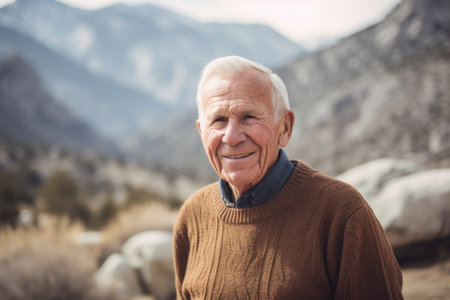 Smiling Under the Light of Divine Love. Portrait of an elderly African American man in a park at sunset
