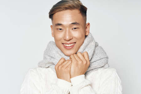 Shooting studio portrait of young Asian Thai woman with white shirt on white background. Relax and mordern concept.