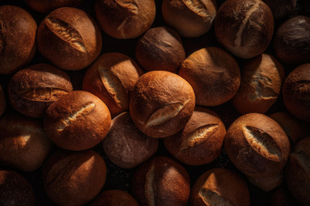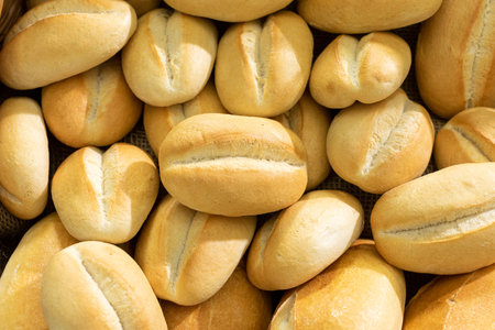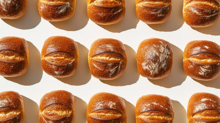A stunning arrangement of freshly baked bread loaves, showcasing their golden crust and soft texture. Perfect for culinary projects and food styling.