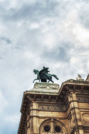 Vienna, Austria - July 9, 2016: Vienna opera House, architectural detail of the facade in a cloudy winter day