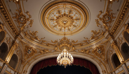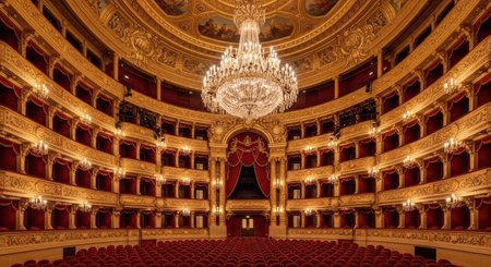 Elegant opera house interior with grand chandelier and ornate architecture