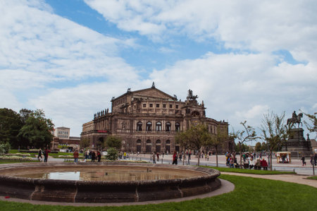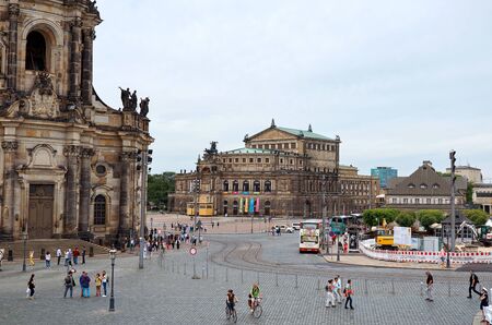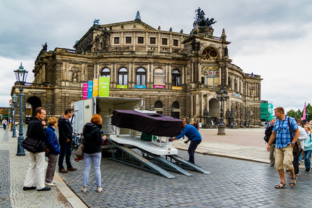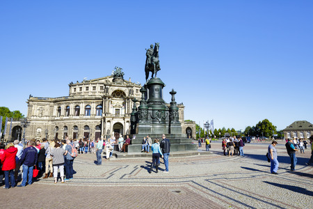 DRESDEN, GERMANY - SEPTEMBER 4: Tourists at the Semperoper in Dresden, Germany on September 4, 2014. The opera house has a long history of premieres, including major works by Richard Wagner and Richard Strauss. Foto taken from Theaterplatz.