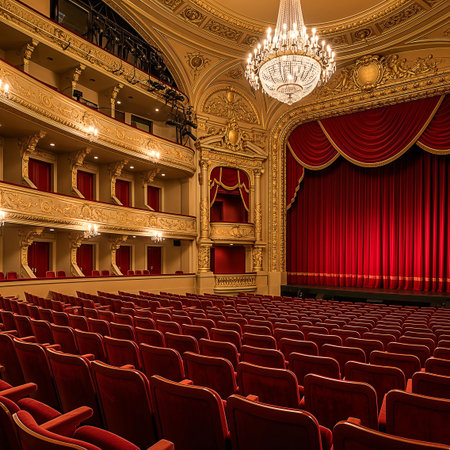 Experience the stunning beauty of a historic theater interior, featuring opulent decor, elegant lighting, and a captivating stage inviting unforgettable performances.