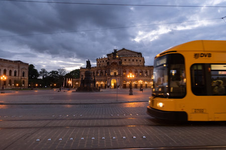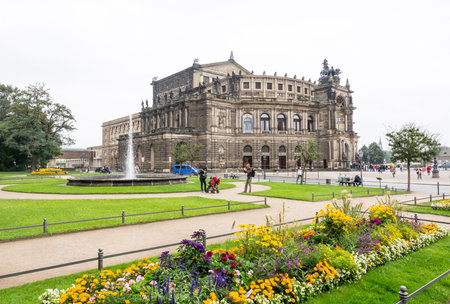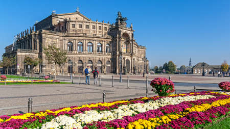 Dresden, Germany - September 23, 2020: Semperoper, famous opera house. The building is located on Theater Square near the Elbe River in the historic center of city