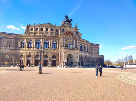 Dresden, Germany - April 18, 2022: opera theater front view