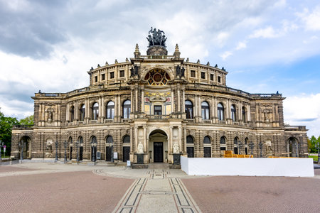 Saxon architecture in Dresden. Baroque building of the opera house, the view from the square in front of the building. Dresden, Germany - 05.20.2019