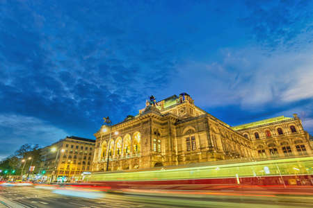 Vienna Austria night city skyline at Vienna State Opera