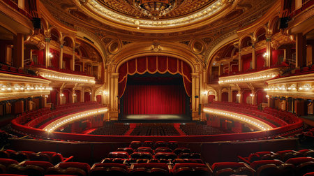 A luxurious opera house in classical style, Dramatic Performance Space: Historic Theater Interior, AI generated