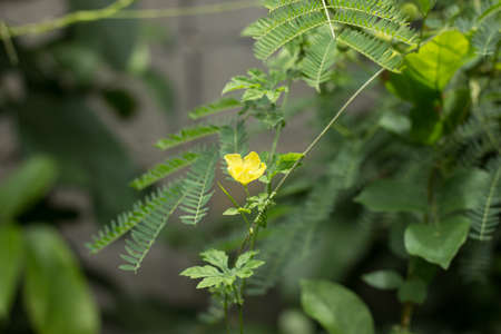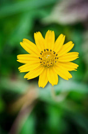 Yellow wild grass flower found along the walkside of street in Thailand