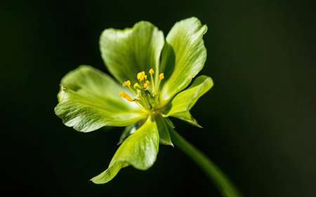 Generative AI : Chelidonium majus or greater celandine plant open yellow flower blooming in spring