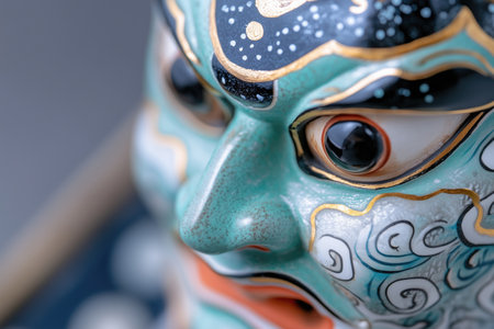 Close up of a traditional oriental mask, closeup of the face