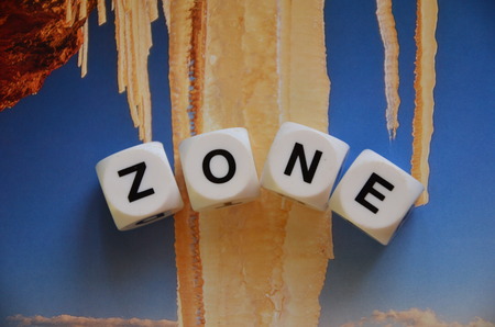 comfort zone. White cubes on glass blue isolated background. Concept of self-development