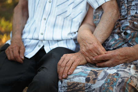 hands grandparents. senior man and senior woman hold hands. happy old age