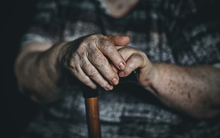 Senior Man Holding Cane. Close-up Of old man Hands On Walking Stick. Hand of a old man holding a cane. Toning.