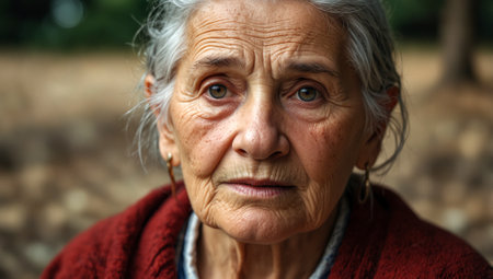 Pensive Elder in Garden Contemplative Senior Amidst Vibrant Flowers.