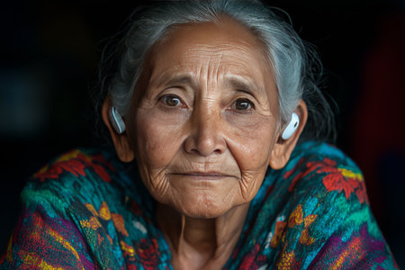 Portrait of a senior woman with hearing aid in her ear. High quality photo
