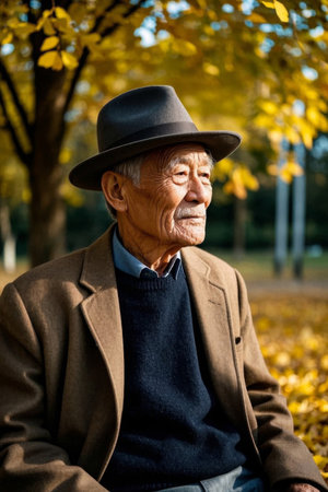 Portrait of a Kind Old Man under the Warm Autumn Sun