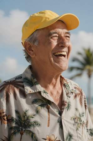 Happy Senior Man Smiling Brightly at Golden Hour Outdoors