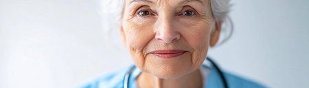Two experienced senior doctors smiling warmly, symbolizing healthcare, teamwork, and professionalism