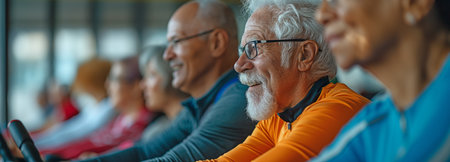 Seniors in the diversity group work out on the gym's stationary exercise bikes.
