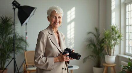 elegant aged woman photographer
