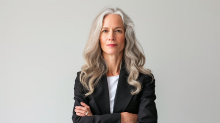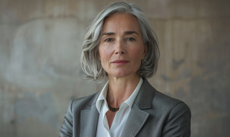 Portrait of a confident mature businesswoman standing against a grey wall