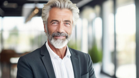 Smiling older professional manager in a corporate environment, showcasing experience and reliability
