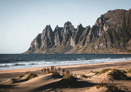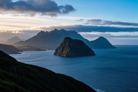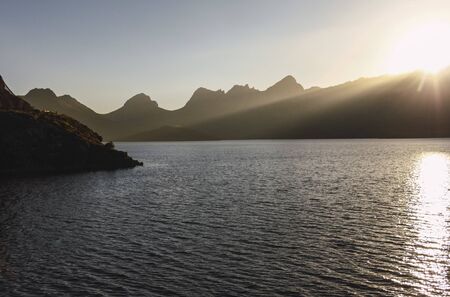 Mountain sea landscape. Beautiful nature of Norway. Lofoten islands.