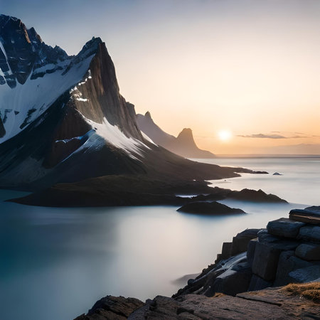 Beautiful sunset over the sea in Iceland. Long exposure shot.
