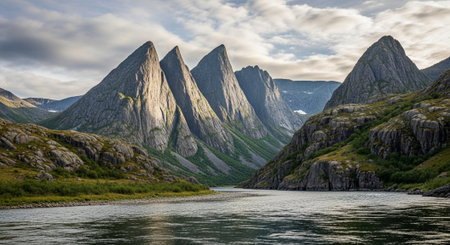 Otertinden mountain with Signaldalelva river in Northern Norway