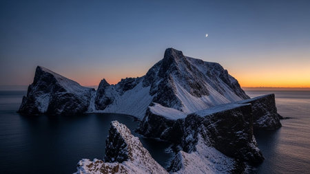 Winter's Enchantment: Shimmering Snow Mountain on Lofoten Islands