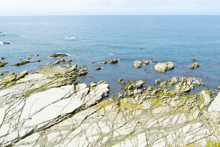 Large area Wide flat mud-rock ledge extending into sea at Kaikoura South Island New Zealand