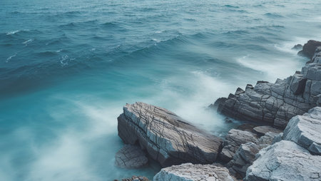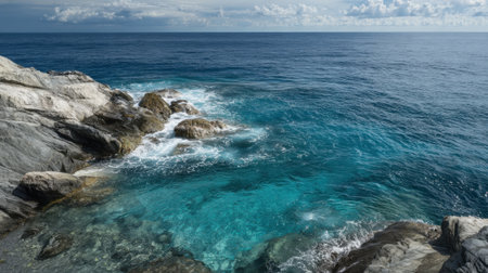 AI Generated. Stunning view of a rocky coastline meeting a deep blue sea