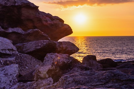 sunset at the granite rocks les rochers of Saint-Guenole Brittany, France
