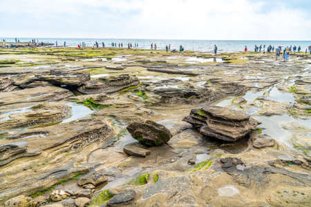 The erosion of the ocean and weathering. Forms strange rocks and stones. Fugang Geopark (Xiaoyeliu), Natural stone sculptural park. Taitung County, Taiwan. Sep. 2021